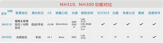 (NH300具體配置請參閱技術規格以及與NH310的功能對比) 技術規格 | NH300 | NH310 | 測量幾何結構 | 8/d | 8/d | 可選擇測量孔徑 | 8mm | 8mm/4mm | 偵測器 | 硅光電二極管 | 硅光電二極管 | 測色光源 | LED藍光激發 | LED藍光激發 | 儀器臺間差 | ≤0.40ΔE*ab | ≤0.40ΔE*ab | 儲存 | 100個標準 8000個樣品 | 100個標準 8000個樣品 | 重復性 | 0.10ΔE*ab 測量白色標準板30次平均值 | 0.08ΔE*ab 測量白色標準板30次平均值 | 重量 | 500g | 500g | 尺寸 | 205×70×100 mm | 205×70×100 mm | 電源 | 充電鋰離子電池 3.7V@32000mAh | 充電鋰離子電池 3.7V@32000mAh | 燈泡壽命 | 5年大于160萬次測量 | 5年大于160萬次測量 | 充電時間 | 約8小時-100%電量 | 約8小時-100%電量 | 充電后可測次數 | 8小時內可測量3000次 | 8小時內可測量3000次 | 操作溫度范圍 | 10~40℃,0~85%相對濕度(無結露) | 10~40℃,0~85%相對濕度(無結露) | 數據接口 | USB接口 | USB接口 | 加長口徑(選配) | Φ8mm加長口徑,可測凹面部位 | Φ8mm加長口徑,可測凹面部位 | 打印機(選配) | 微型熱敏打印機 | 微型熱敏打印機 |